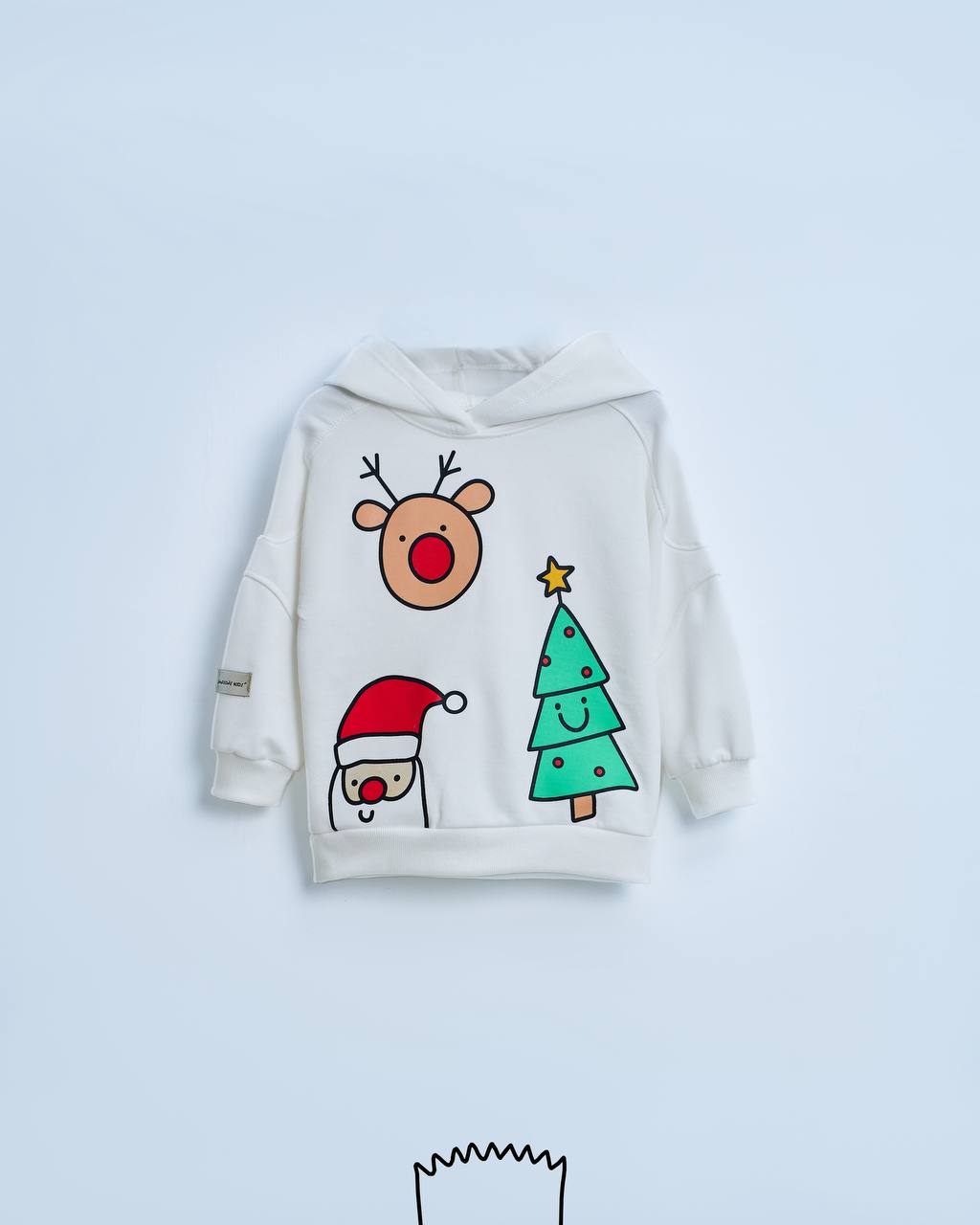 هودی کریسمس با رنگ سفید برفی و طرحهای شاد، انتخابی جادویی برای فصل زیبای کریسمس. این هودی از پنبه نرم و باکیفیت تولید شده که گرمای دلنشین و راحتی بینظیری برای فرزندتان به ارمغان میآورد. طرحهای کریسمسی شامل بابانوئل، گوزن شمالی و درخت کاج، شادی و نشاط این فصل را به کوچولوی شما هدیه میدهد. یک انتخاب فوقالعاده برای مهمانیهای کریسمس، عکسهای یادگاری و روزهای برفی زمستان.